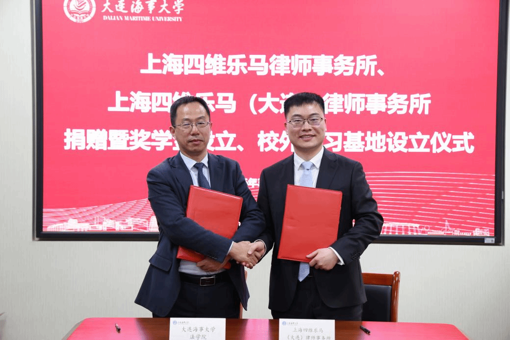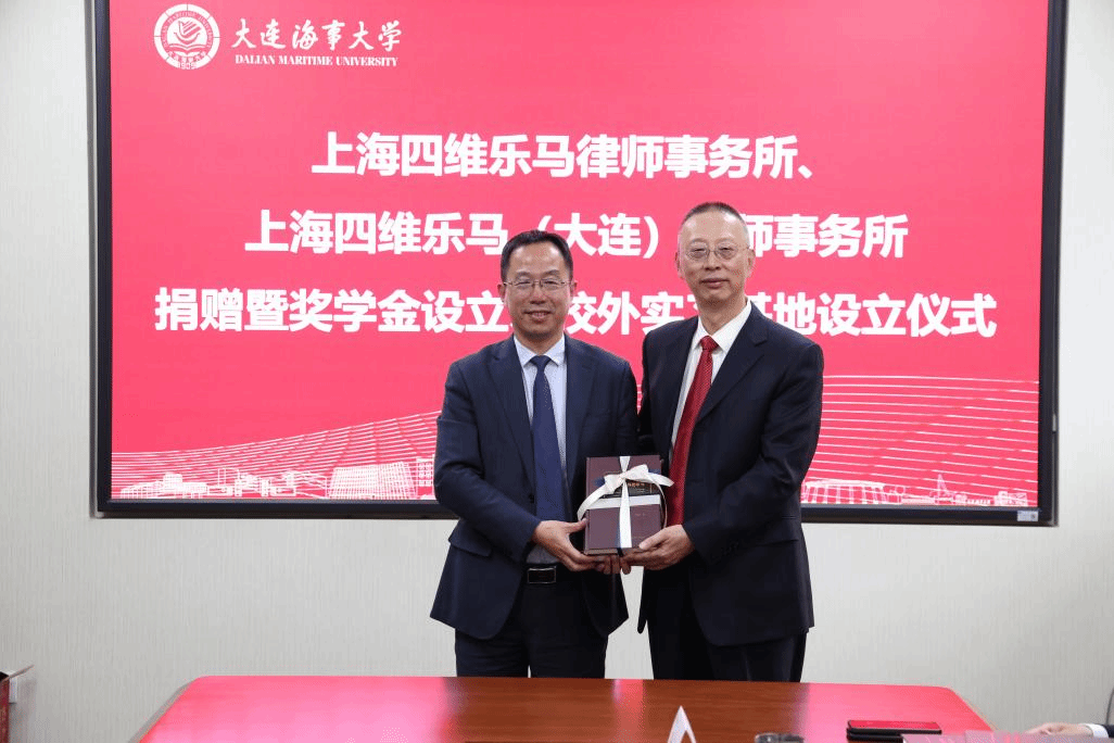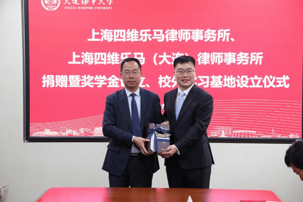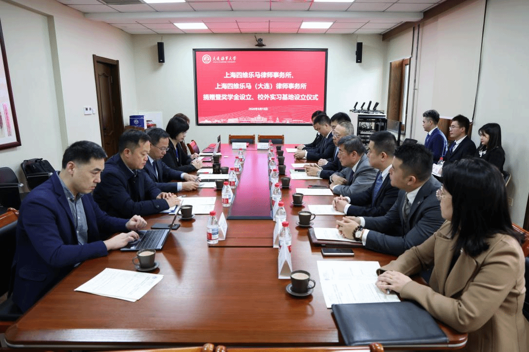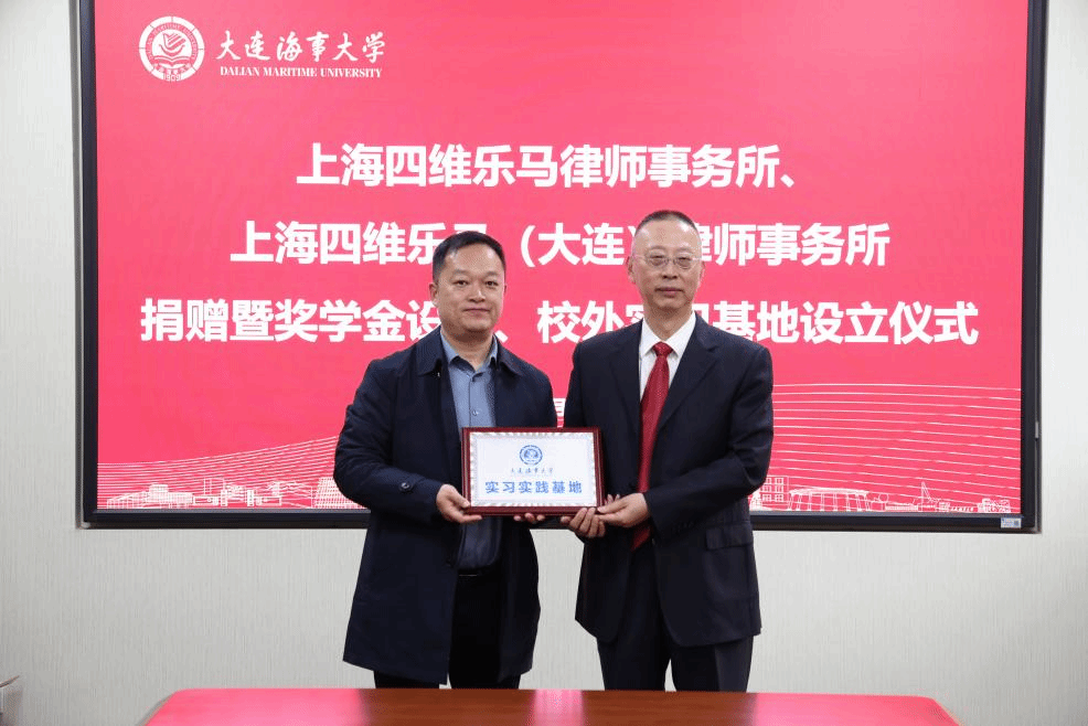 春和景明启新程,校企同心赴致远。3月16日上午,上海四维乐马律师事务所、上海四维乐马(大连)律师事务所捐赠仪式暨奖学金设立、校外实习基地设立仪式在法学楼209温情启幕。上海四维乐马律师事务所主任王桂喜、上海四维乐马(大连)律师事务所主任柴青带领核心团队莅临现场,大连海事大学法学院院长朱作贤、党委书记吕海宁等相关领导出席仪式,共话校企协同育人,共促法治人才成长。上海四维乐马律师事务所高级合伙人周琦、周平、吴蕾、齐中飞、张运鑫、刘倩,上海四维乐马(大连)律师事务所律师杨文旭、尹聪出席仪式。仪式由吕海宁主持。