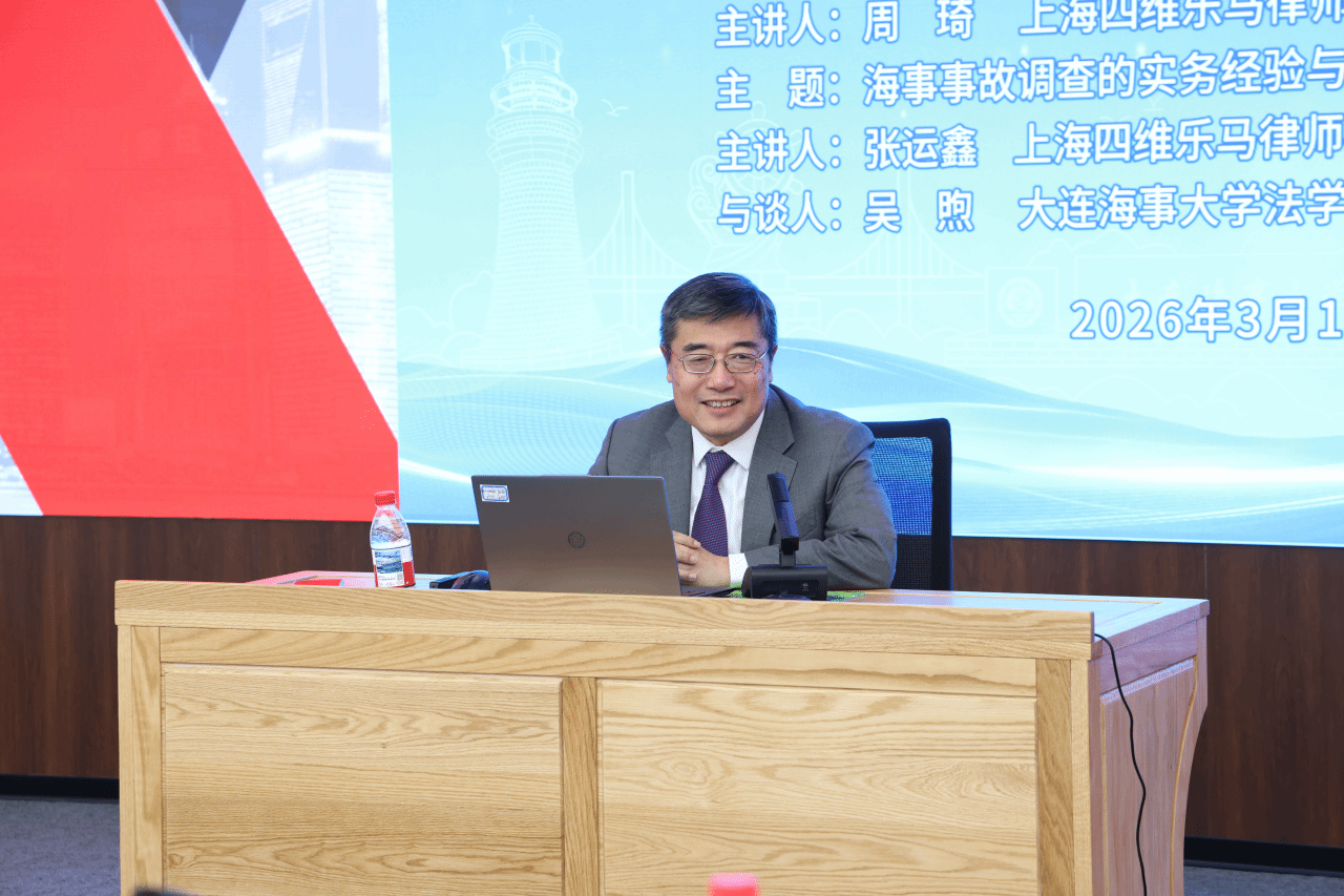 会后,上海四维乐马律师事务所高级合伙人周琦、张运鑫为学院师生开展了“实际托运人相关问题探讨与海事事故调查经验分享”专题讲座。本次讲座由我院吴煦教授主持,朱作贤教授担任与谈人。